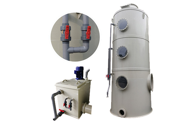 酸霧凈化塔(pp酸霧凈化塔)具有效率高、耐腐蝕性強,高強度、低噪聲、耗電省、體積小,拆裝維修方便,輕巧耐用,外形美觀大方等優(yōu)點。--酸霧凈化塔具有凈化效率高、操作管理簡單、使用壽命長的酸、堿性廢氣凈化工藝與設備。pp酸霧凈化塔具有結(jié)構(gòu)簡單、能耗低、凈化效率高和適用范圍廣的特點,能有效去除氯化氫氣體(HCl)、硝酸氣體(HNO3)、氟化氫氣體(HF)、氨氣(NH3)、硫酸霧(H2SO4)、鉻酸(CrO3)、氰氫酸氣體(HCN)、堿蒸氣(NaOH)、硫化氫氣體(H2S)、等水溶性氣體。采用氫氧化鈉為吸收中和液,溶液濃度為8%-16%。 酸霧廢氣由風管引入廢氣凈化塔,經(jīng)過填料層,廢氣與氫氧化鈉吸收液進行氣液兩相充分接觸吸收中和反應,酸霧廢氣經(jīng)過酸霧凈化塔凈化后,再經(jīng)除霧板脫水除霧后由風機排入大氣。吸收液在廢氣塔底部經(jīng)水泵增壓后在廢氣塔頂部噴淋而下,最后回流至廢氣塔底部循環(huán)使用。酸霧廢氣經(jīng)過凈化后達到排放標準要求。