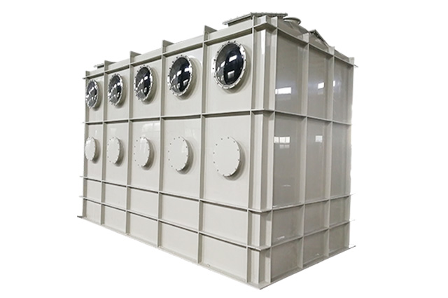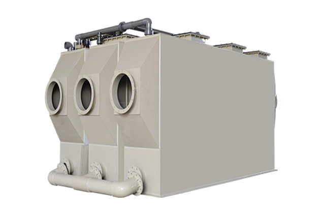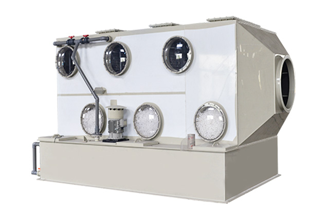 PP臥式噴淋塔也叫臥式交叉流式洗滌塔、PP臥式廢氣處理塔。臥式噴淋塔適用于空間狹小的安裝環(huán)境,多用于室內(nèi)安裝??捎糜谔幚砜扇苄詺怏w、液態(tài)微粒、固粒狀物、臭氧。在工業(yè)用途上可當(dāng)做冷卻塔、濕潤機(jī),并適用于各種工程制程的廢氣處理。PP臥式噴淋塔的工作原理:有害廢氣由離心通風(fēng)機(jī)壓入或吸入進(jìn)風(fēng)段,再流動至填料層,與噴淋液接觸反應(yīng)。噴淋系統(tǒng)利用清水作為循環(huán)吸收液,循環(huán)水從塔體的上部的布水器噴淋至填料層,潤濕填料表面形成流動的液膜。PP臥式噴淋塔填料層內(nèi)氣、液兩相呈逆流流動,氣液兩相在塔體內(nèi)逆流接觸,利用有害氣體在吸收劑中的一定的溶解度,可溶的部分不斷融入吸收液中,達(dá)到降解氣體中有害組分含量的目的??梢赃m當(dāng)?shù)奶砑铀巹?,有害廢氣不斷被吸收或是被化學(xué)反應(yīng)去除掉,濃度在流動過程中逐漸降低,到PP臥式噴淋塔側(cè)部是達(dá)到吸收要求排出洗滌塔外。